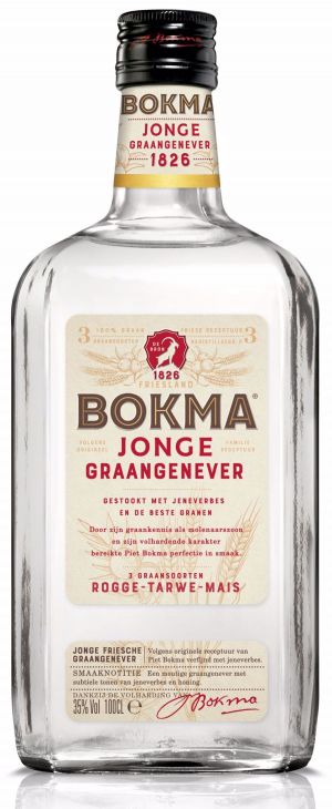 Bokma Jonge Graanjenever is een licht moutige jenever met subtiele tonen van jeneverbes. De puurheid van deze 100% graangenever is al generatielang bewaard gebleven en is hiermee nog steeds onderscheidend van veel andere jenevermerken.