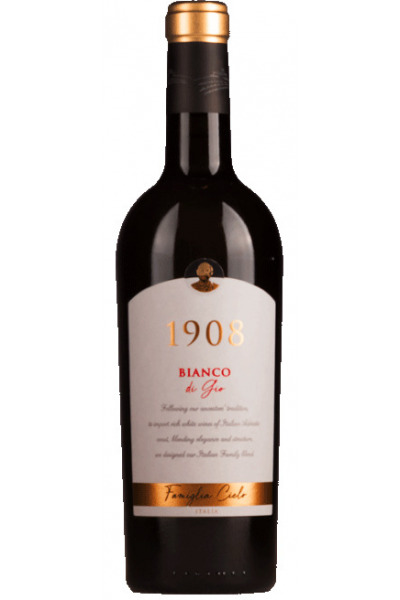 Cielo 1908 Bianco di Gio is een unieke blend van Sauvignon Blanc uit Veneto en Chardonnay uit Puglia met een elegante gelige kleur. De wijn is bijzonder geurig, met een boeket dat rijk en expressief is met nuances van en perzik en citrus. De smaak van deze wijn is vol met levendige en frisse zuren. De afdronk is prettig en fris.
